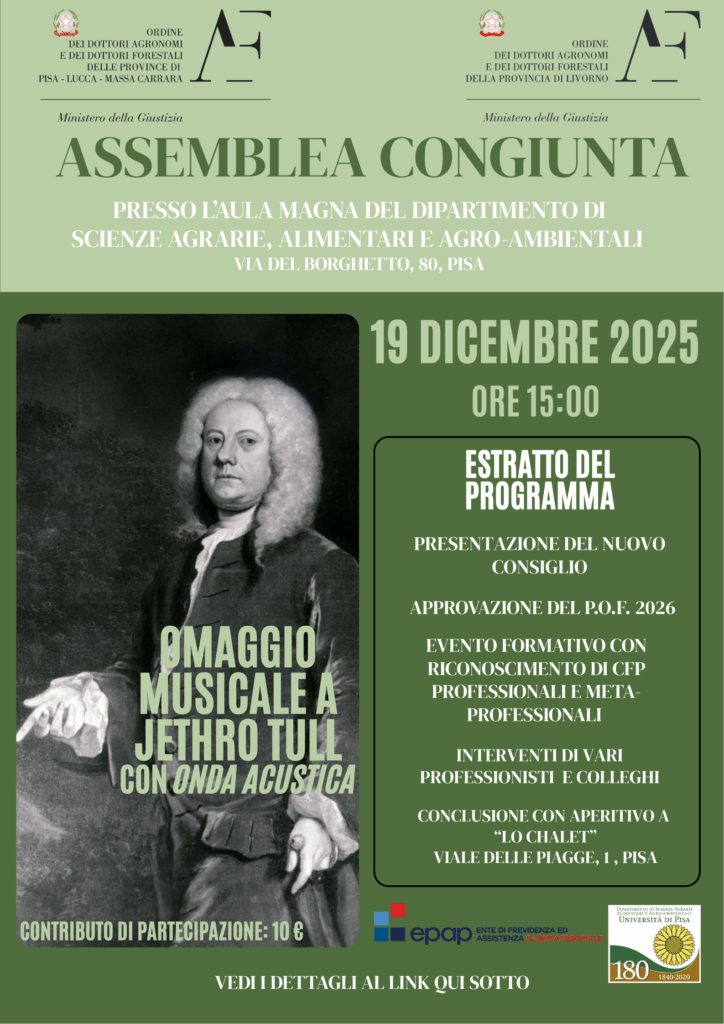 19 DICEMBRE 2025 – PRESSO IL DIPARTIMENTO DI SCIENZE AGRARIE, ALIMENTARI E AGRO-AMBIENTALI, VIA DEL BORGHETTO, 80, PISA